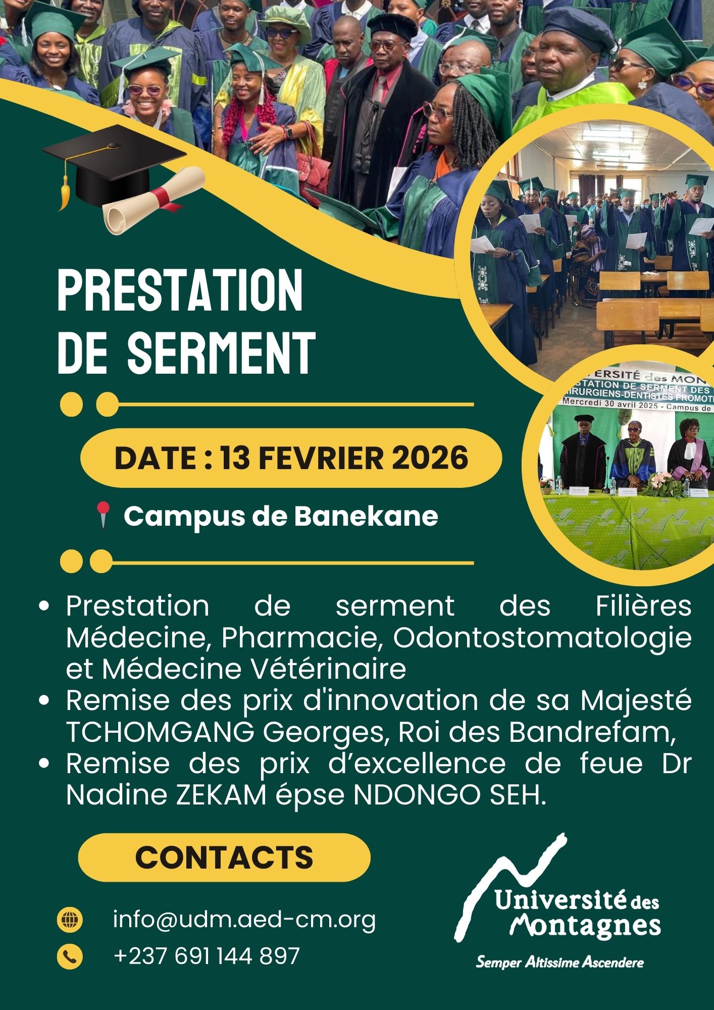 Premier รฉtablissement privรฉ au Cameroun ร offrir des programmes de doctorat en Pharmacie, Mรฉdecine, Mรฉdecine vรฉtรฉrinaire et Gรฉnie Biomรฉdical.